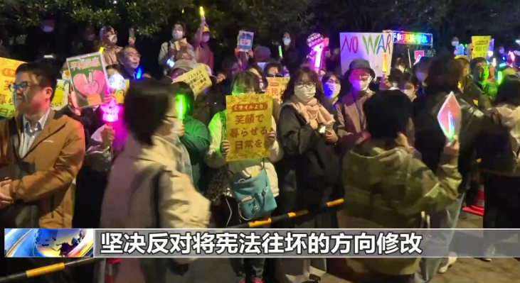 总台记者 刘耀鸿:不仅是在东京,日本全国近百个地点同步举行了联动集会,要求日本政府坚守和平宪法原则。